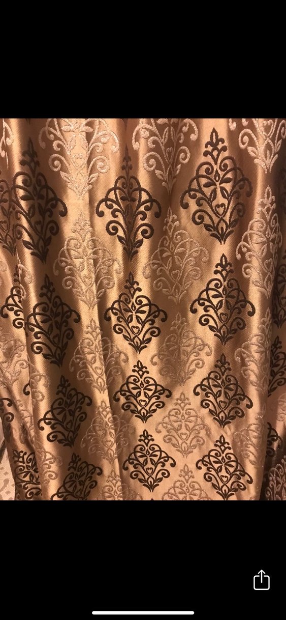 İki adet bağlama ipleride mevcut Boy 2 metre 58 en 88 cm hiçbir kusuru yoktur Parlak kahverengi kumaşa sahip bu perde, klasik desenleriyle odanıza zarif bir hava katıyor.