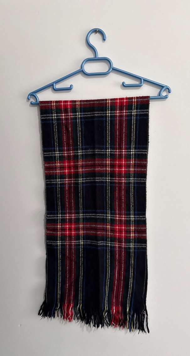 Erkekler için klasik ekose desenli, koyu tonlarda ve kırmızı detaylı, normal uzunlukta, konforlu ve geleneksel tarzda atkı.