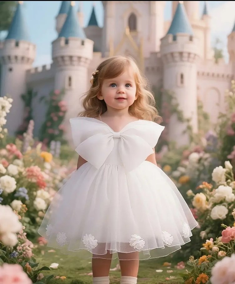 Kız çocuklar için straplez, ince kesim beyaz elbise, büyük fiyonk ve nakış detaylarıyla klasik ve modern tarzı birleştirir. Yumuşak sentetik kumaştan üretilmiştir. Arka kurdale ister tak ister sök tarzında DETAYLI FOTOĞRAF ATABİLİRİM
