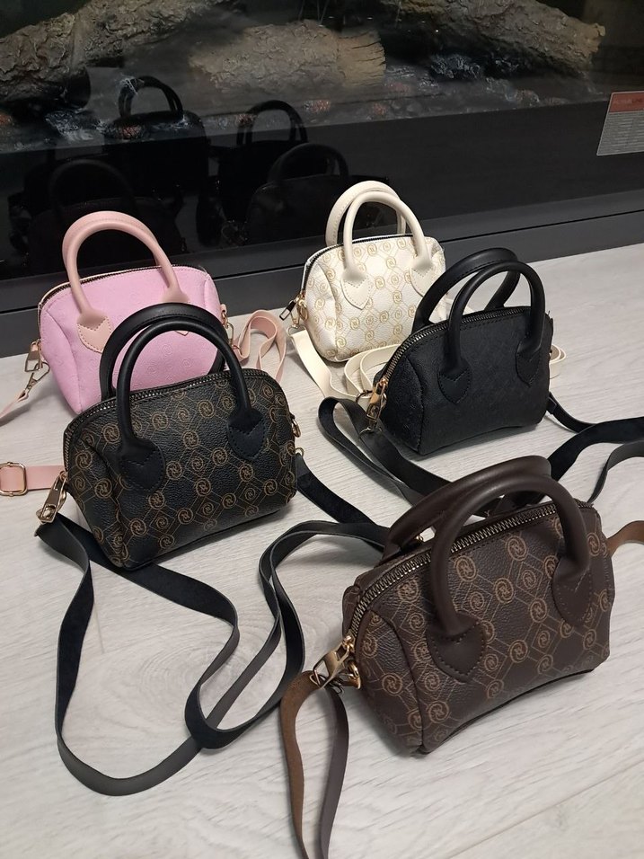 Pastel renklerde, baskılı desenli, tokalı detaylara sahip modern klasik Paris tarzı deri kadın çantası. Günlük kullanıma uygun.
