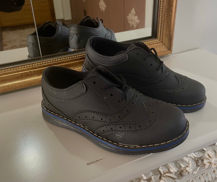 Siyah klasik erkek çocuk ayakkabıları, modern tasarım ve sağlam kauçuk taban ile okul kullanımı için uygundur.