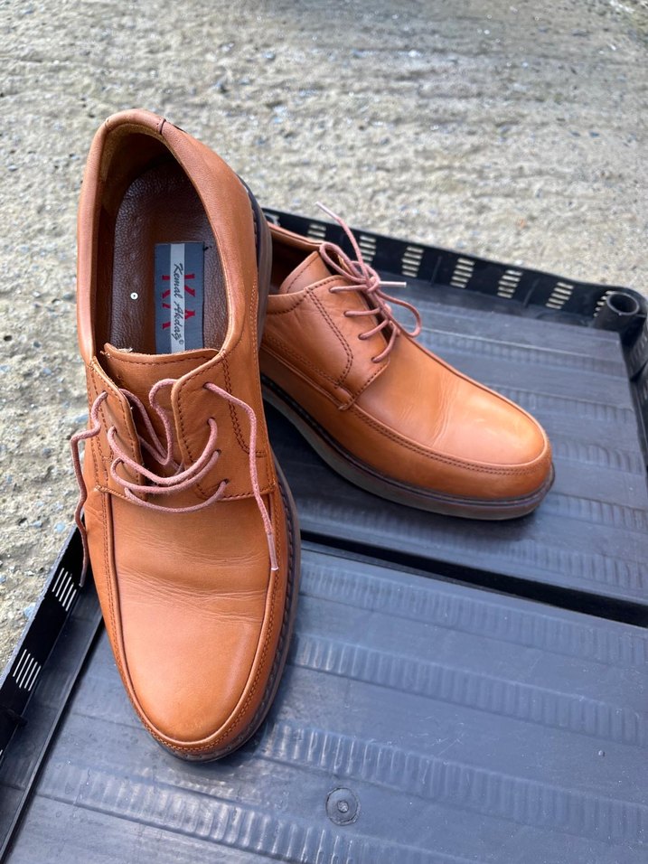 Parlak kahverengi deri, bağcıklı klasik erkek ayakkabısı, günlük sokak stili için uygundur.