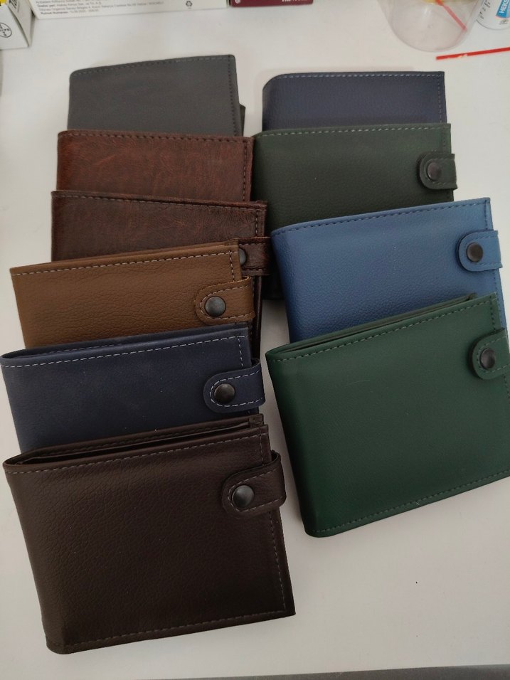 Farklı renk tonlarında klasik erkek deri cüzdan, desen içermeyen sade tasarım ve güvenli çıtçıt kapama ile.
