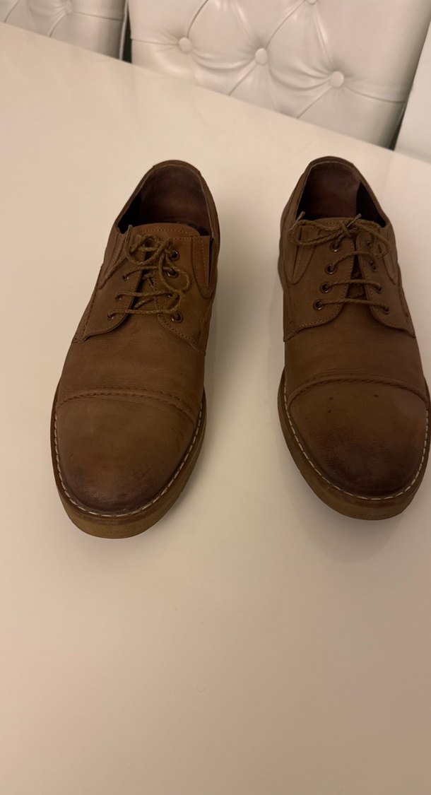 Koyu kahverengi klasik erkek ayakkabısı, normcore tarzıyla ofis kullanımı için uygundur. Trendy casual stil için zahmetsiz şıklık sunar. Yurtdışından alınmıştır 1kez giyildi ayağı sıktığı için satıyoruz