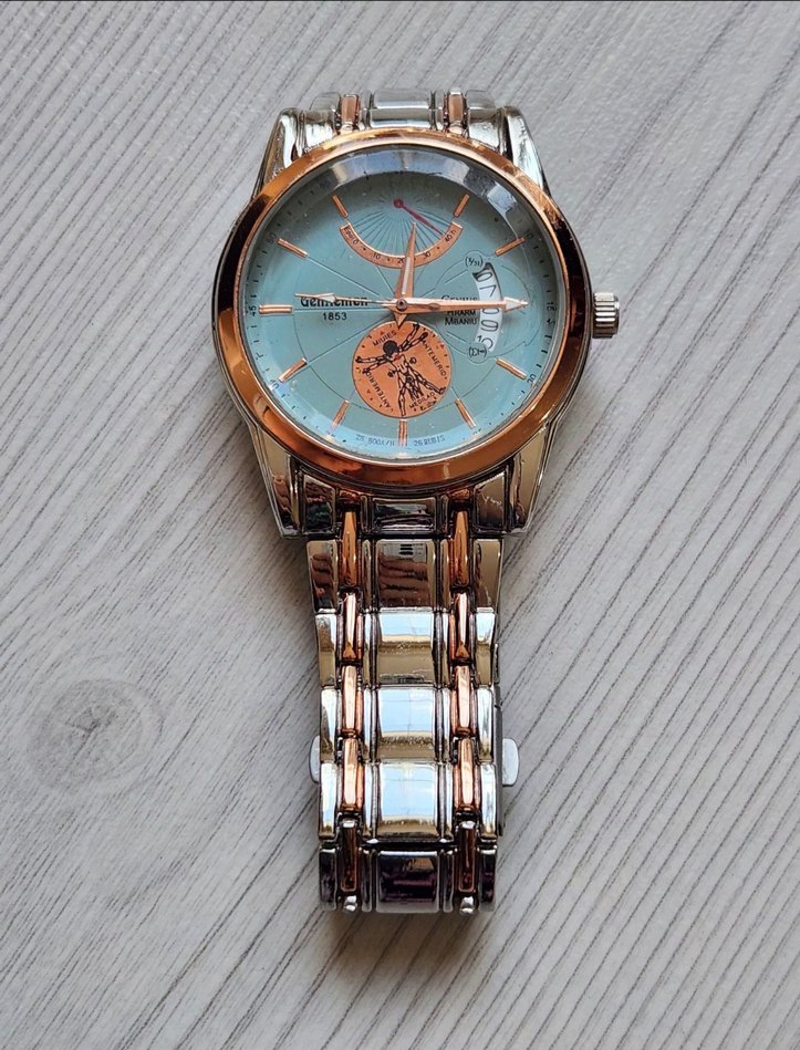 Parlak altın renkli metal kayış ve kasaya sahip, modern klasik tarzda erkek saati. takvimli çelik kordon erkek kol saati ⌚