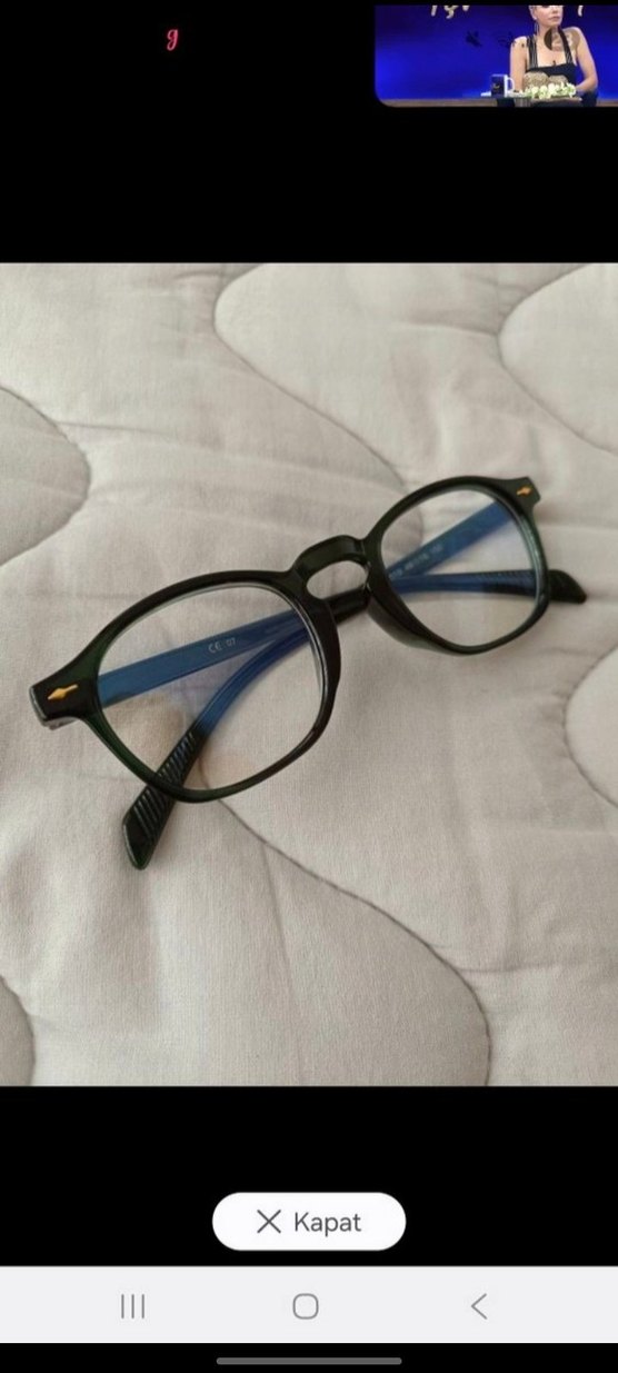 Klasik gotik tarzda, koyu renk çerçeveli ve şeffaf mavi saplı kadın gözlüğü. Yuvarlak camlarıyla vintage bir görünüm sunar. ️