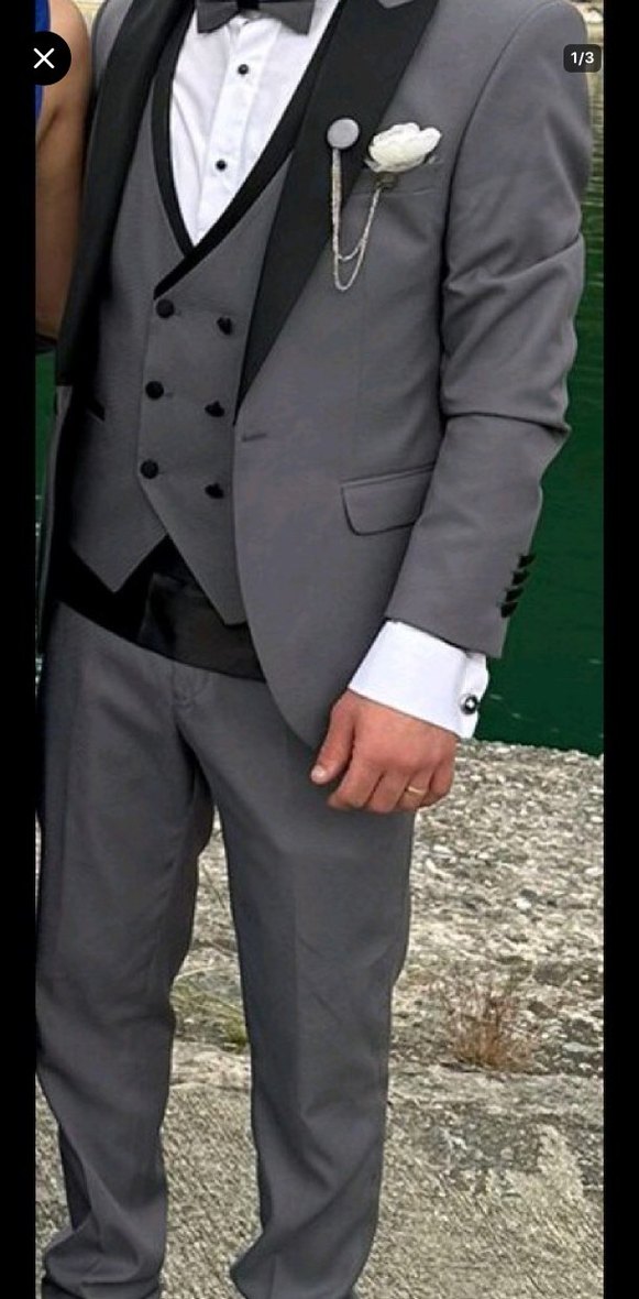 Klasik gri renkte, notch yakalı ve regular fit damat takımı. Düğmeli detaylara sahip, normal boyda ve desensizdir.