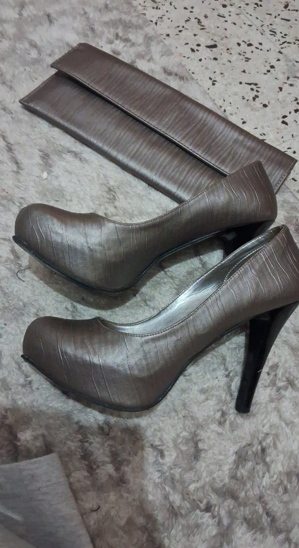 Klasik Gri Deri Stiletto Kadın Topuklu