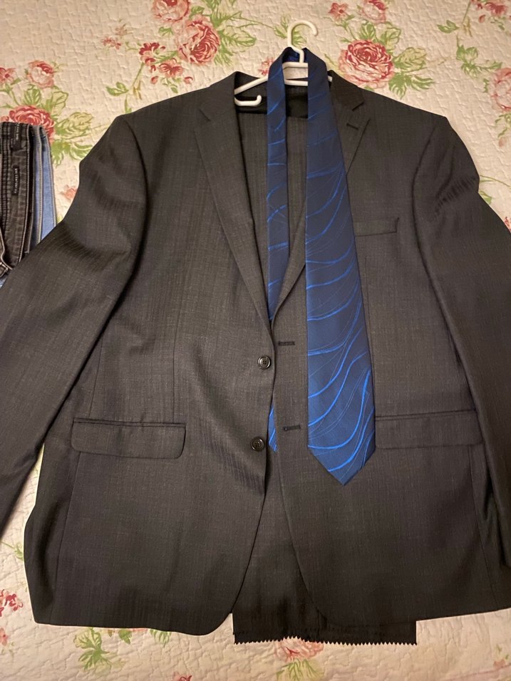 Koyu gri renkte, klasik kesim erkek takım elbise. Notch yaka ve pile detaylı, ofis için uygun, normal boy ve strappy kolludur.