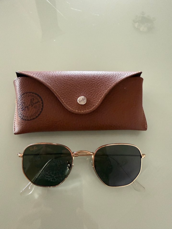 Altın renk çerçeveli, klasik ve karşı kültür tarzında kadın güneş gözlüğü, kahverengi deri kılıfla birlikte, zahmetsiz şıklık sunar. ️