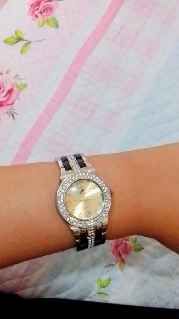 Parlak siyah ve Gold renkte, tokalı kayış ve kristal taşlarla süslenmiş çerçevesiyle klasik ve modern tarzı bir araya getiren kadın kol saati. ⌚