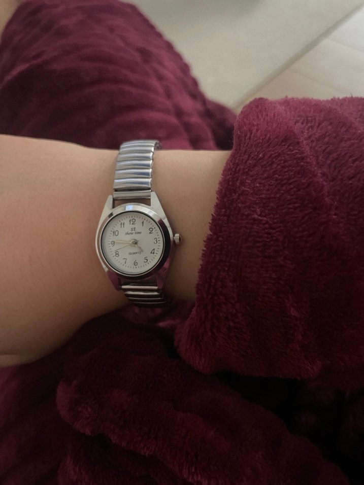 Bu kadın kol saati, gri kemerli metal kayış ve beyaz kadranıyla modern klasik tasarıma sahiptir. Rahat ve zamansız bir şıklık sunar. ⌚