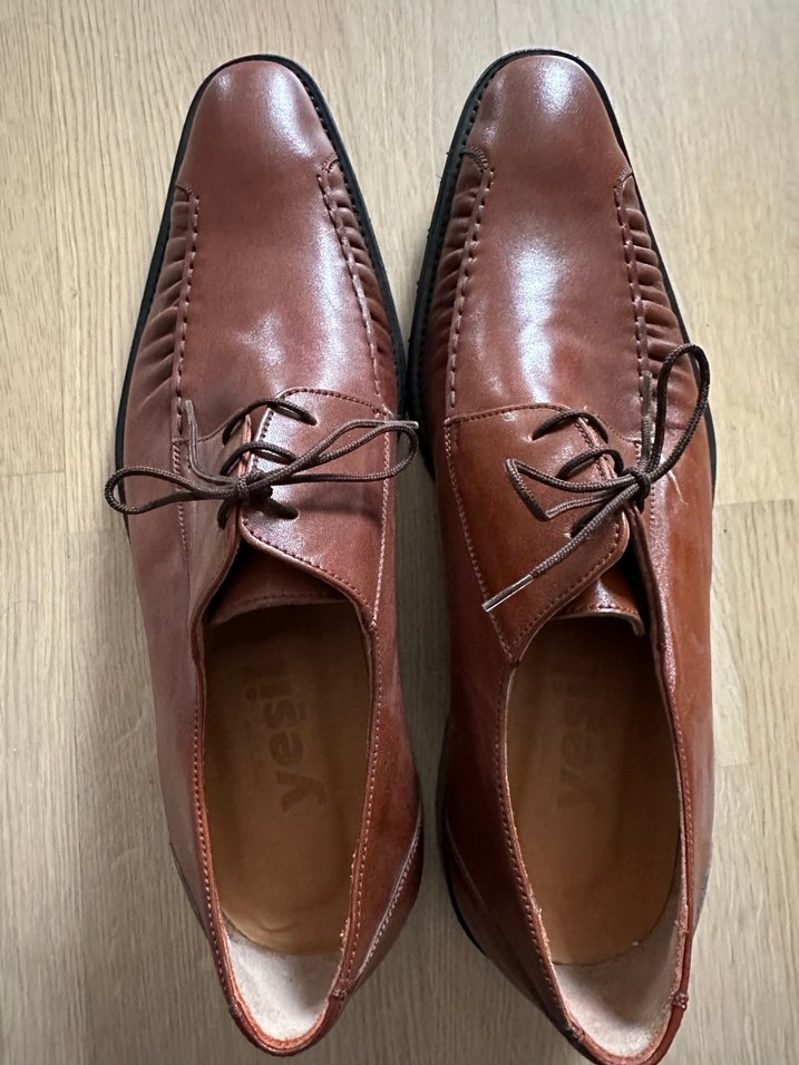 Ürün hiç kullanılmamıştır. Kahverengi parlak deri erkek ayakkabılar, pilili detaylara sahip olup ofis kullanımı için uygundur. Klasik ve geleneksel bir tarza sahiptir.