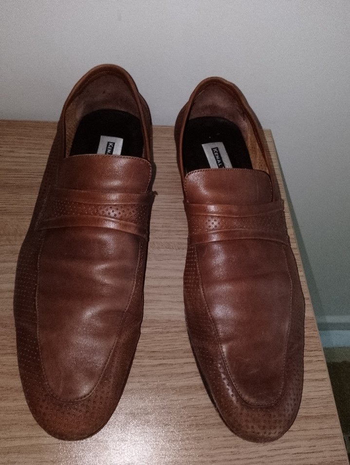 Kahverengi deri erkek klasik ayakkabı, parlak yüzeyli ve tokalı detaylı, ofis kullanımı için çağdaş stile sahip.Kemal Tanca