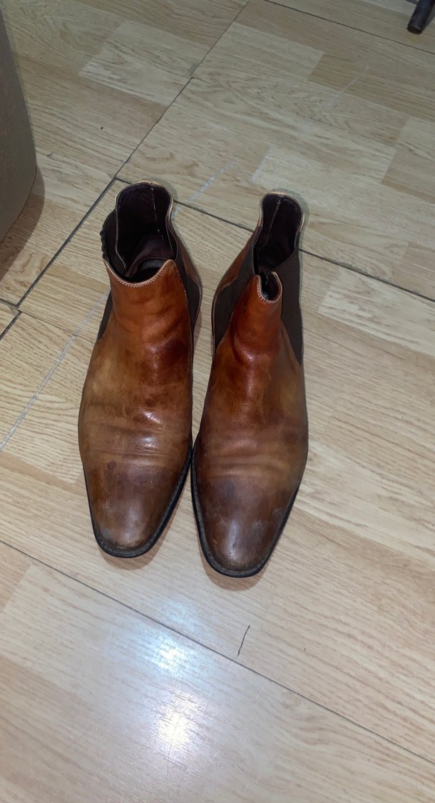 Parlak kahverengi deri erkek bot, vintage tarzda ve tokalı detaylı, günlük kullanıma uygun klasik tasarım.