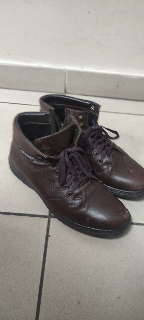Kahverengi deri erkek botları, bağcıklı ve tokalı detaylara sahip, klasik ve geleneksel tarzda, günlük kullanım için uygundur.41 numara hakiki deridir.