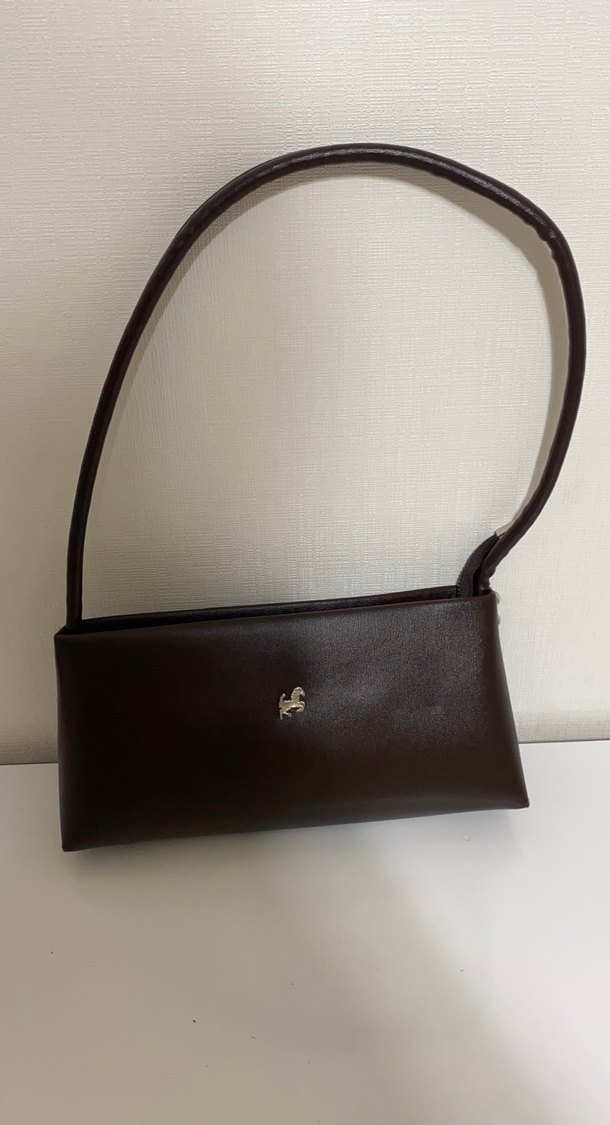 Klasik kahverengi deri, tokalı askıya sahip minimalist kadın çanta, günlük kullanım için sade ve desensiz tasarım.