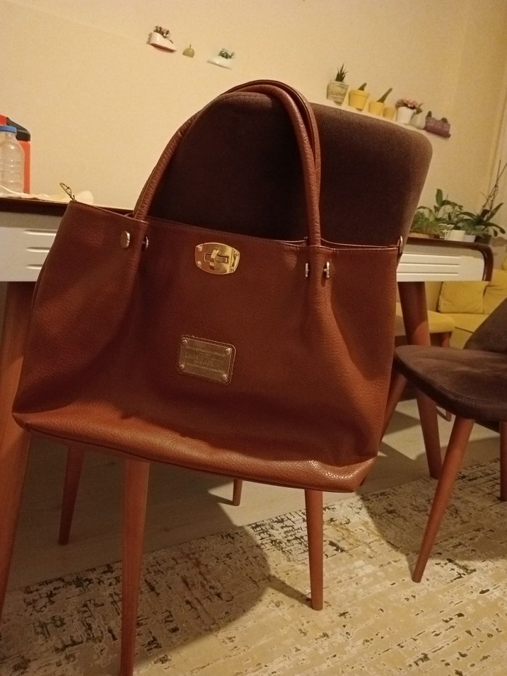 kahverengi deri ve tokalı detaylara sahip modern klasik kadın çanta, Paris tarzı şıklığıyla günlük kullanıma uygun. içindeki cikarilipta ayrı kullanılıyor ikili orjinalmi bilmiyorum kızımın idi görüldüğü gibi bir sıkıntı sı yok