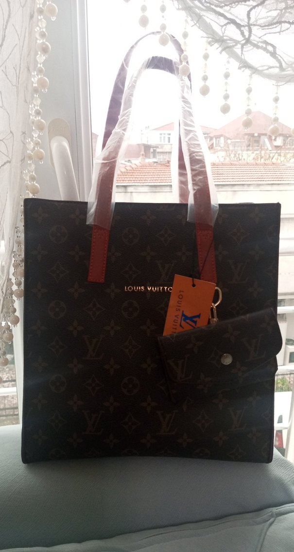 Parlak kahverengi deri kadın çanta, baskılı desen ve küçük uyumlu cüzdan içerir. Klasik Paris sokak stili, günlük kullanıma uygundur. 'LOUISYUITT' yazısı bulunur. içinde bulunan bir çantası daha var aşırı kullanışlı şık zarit her kombinin kurtarıcısı