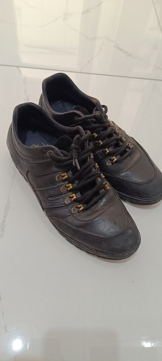 Kahverengi, klasik tarzda erkek ayakkabıları için bağcık. Dayanıklı ve günlük kullanım için uygun.