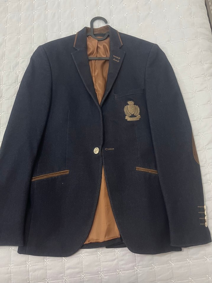 Kahverengi, düğmeli ve klasik kesim erkek takım ceketi. Uzun kollu ve desen içermeyen, ofis ve iş ortamlarına uygun bir modeldir.