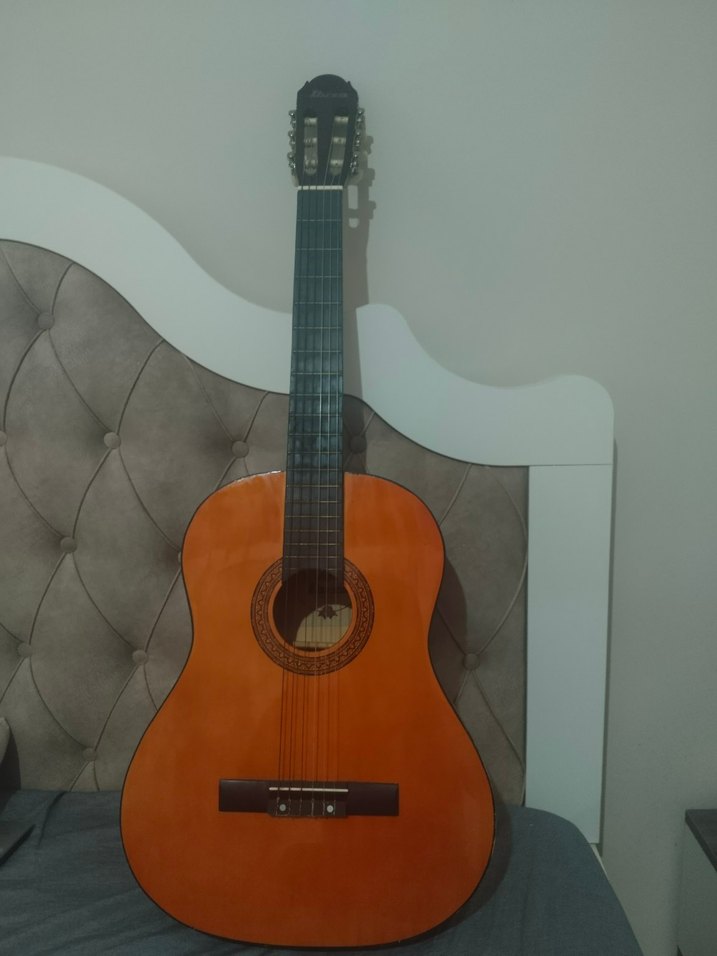 Klasik kahverengi gövdesi, altı teli ve pürüzsüz yüzeyi ile çeşitli müzik tarzlarına uygun gitar.