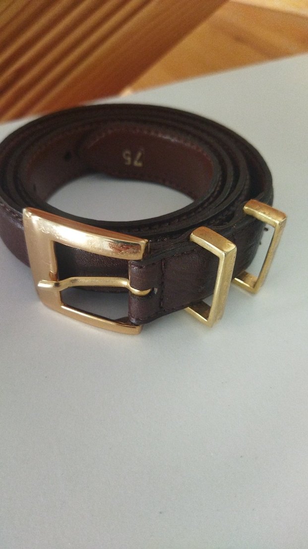 Koyu kahverengi deri ve altın renkli tokasıyla klasik tarzda kadın kemeri.