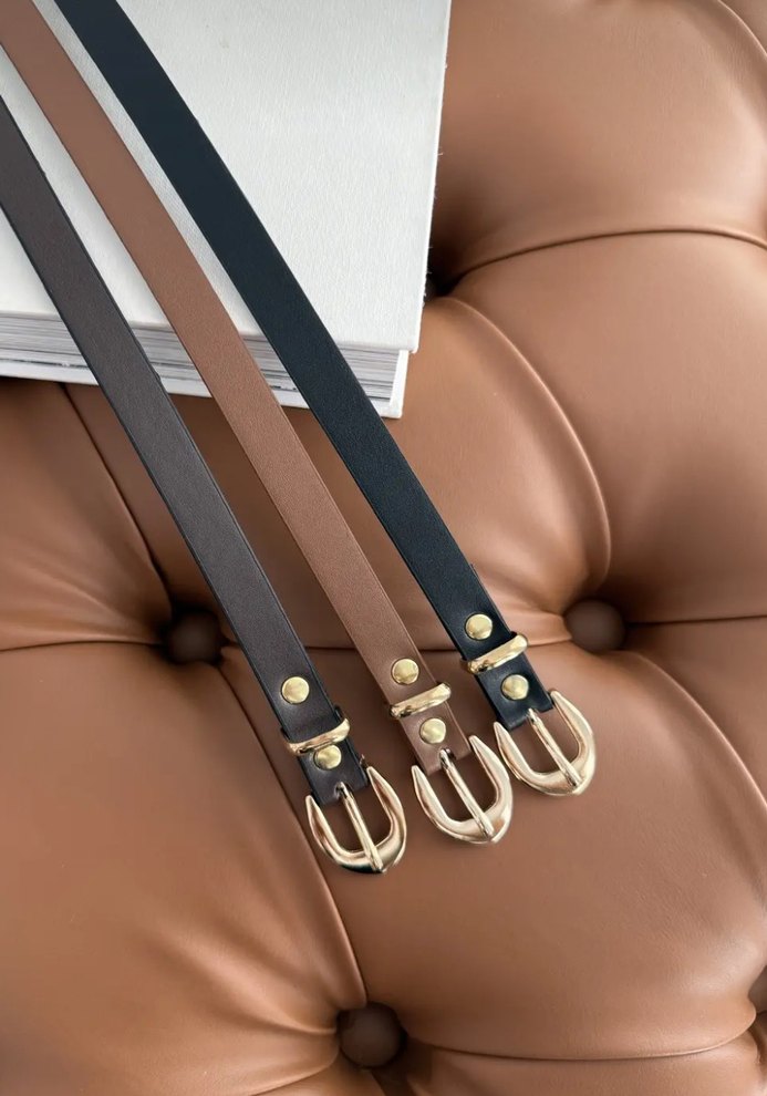 Koyu kahverengi deri kayışa sahip klasik kadın kemeri, tokalı kapama ile zamansız ve çağdaş tasarımı birleştirir. Her kıyafete şık dokunuş katar.