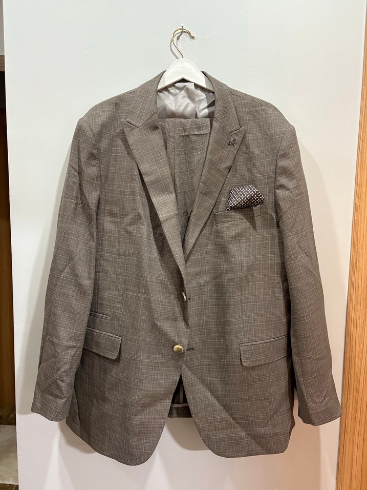 Klasik Kesim Düğmeli Kahverengi Erkek Takım Elbise