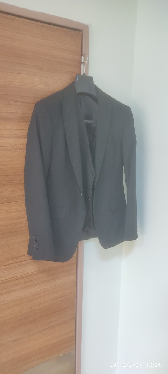 CSS marka 48/6 yelekli Koyu gri renkli, klasik kesim erkek takım elbisesi. Uzun kollu, düğmeli ve normal boyda, ofis için uygun şık bir parça. ️