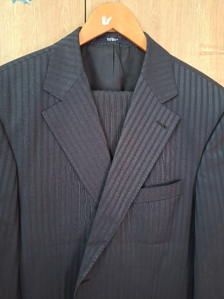 Lacivert renkte, klasik kesim ve pileli detaylara sahip erkek takım elbisesi. Ofis için uygun, modern klasik tarzda ve normal uzunlukta tasarlanmıştır. Markası kiğılı