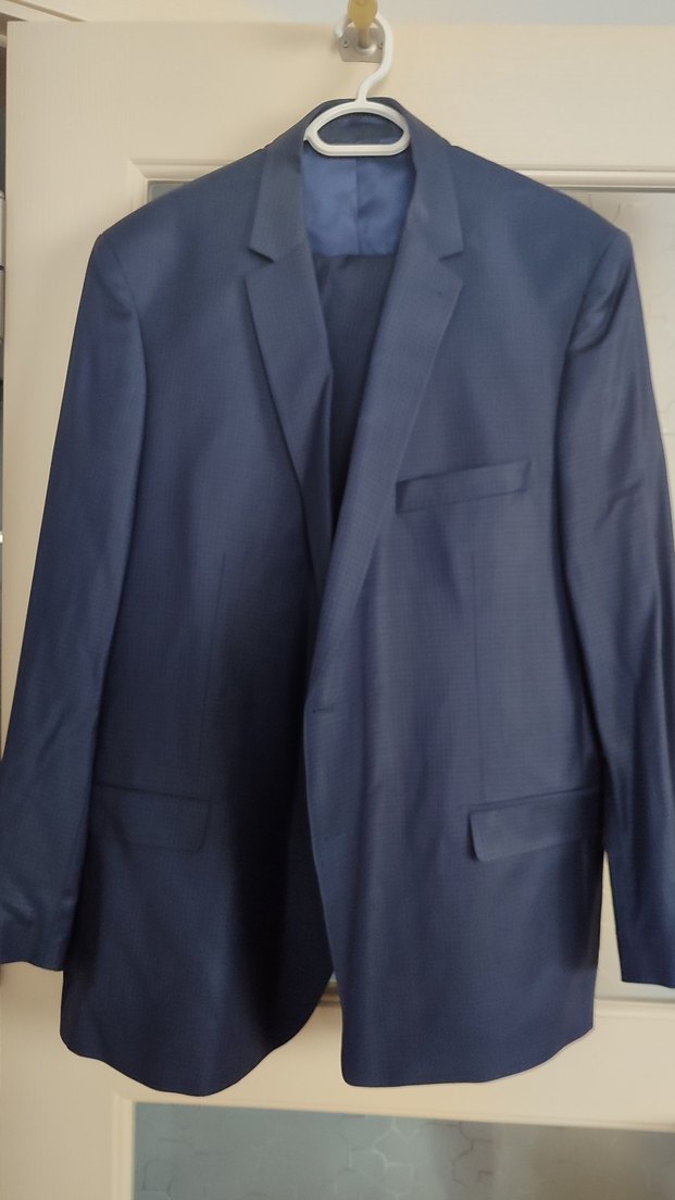 Lacivert renkli, klasik kesim, uzun kollu ve düğmeli erkek takım elbisesi, ofis için uygundur. Normal boy ve modern klasik tarzda tasarlanmıştır.