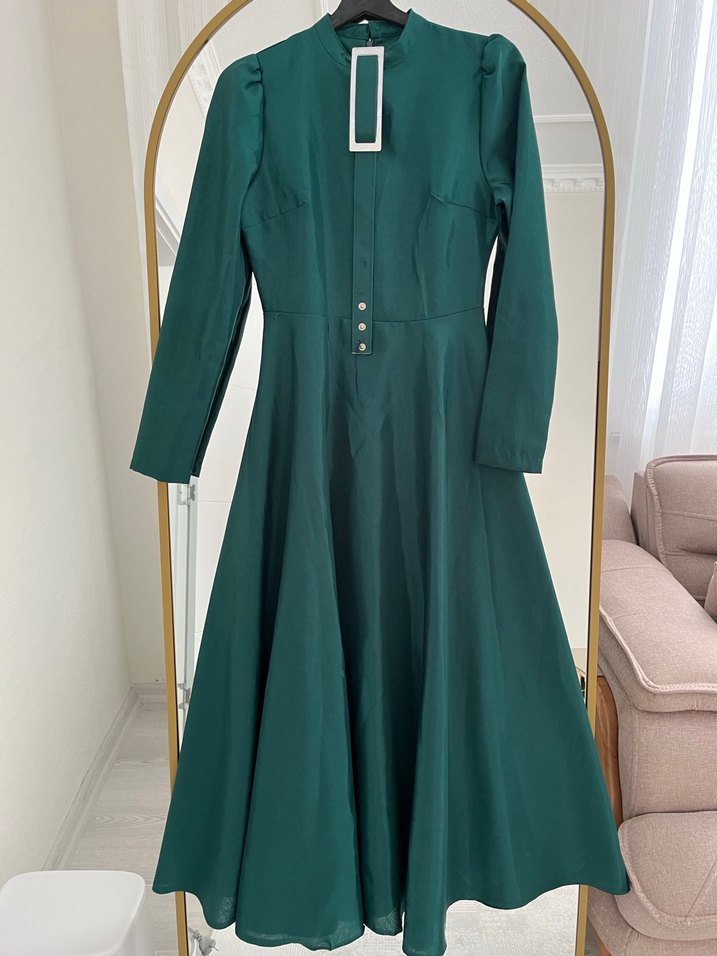 Klasik Kesim Yeşil Uzun Kadın Elbise