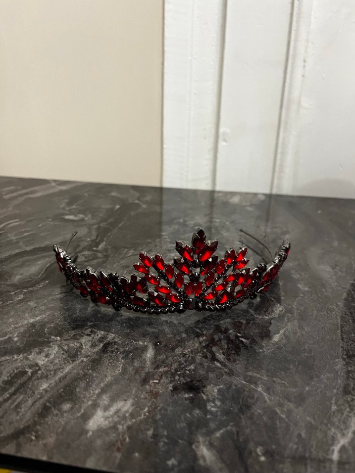 Koyu kırmızı cam taşlarla süslenmiş, parlak gotik tarzda klasik zarif saç tacı.
