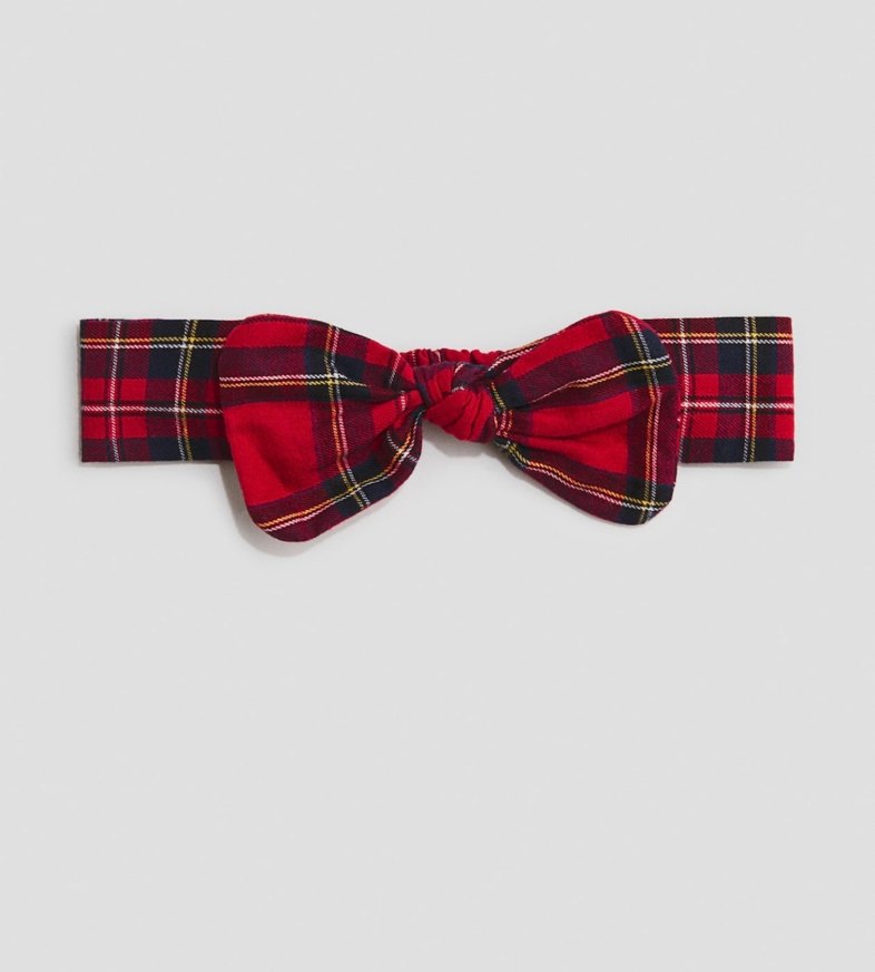 Klasik kırmızı renkte, renkli ekose desenli, geleneksel Paris tarzında erkek papyon. Bir kez çekimde kullanılmıştır. HM den alınmıştır