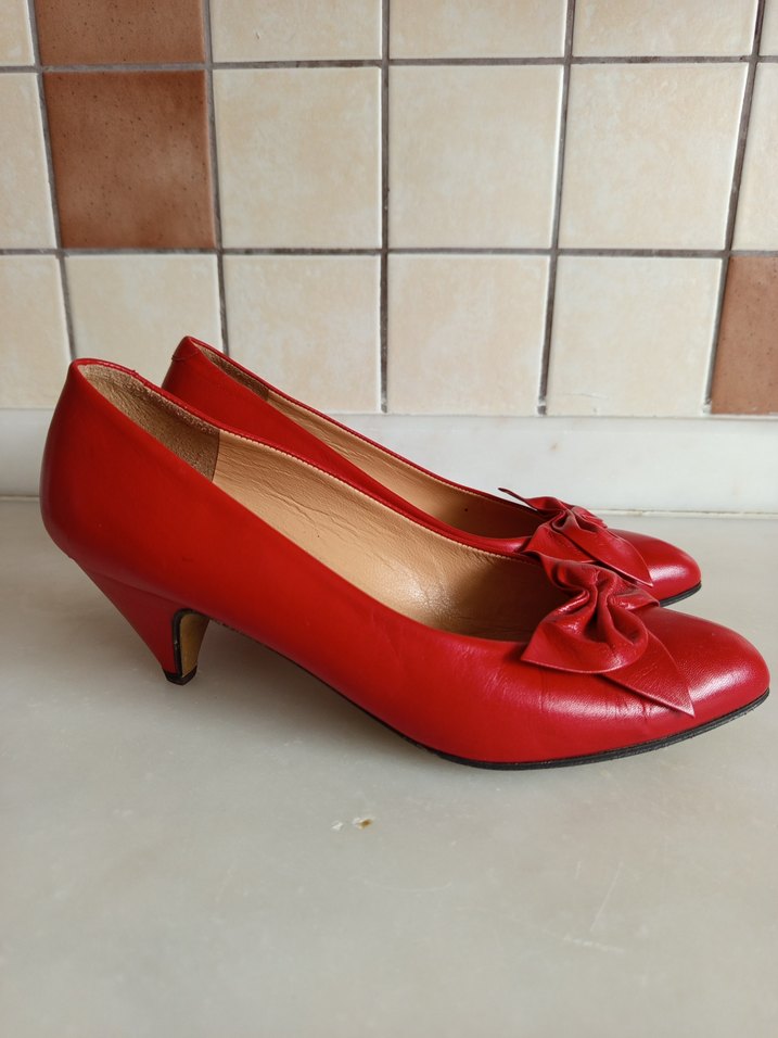 Kırmızı renkte, fiyonk detaylı, klasik topuklu stiletto. 37 numara