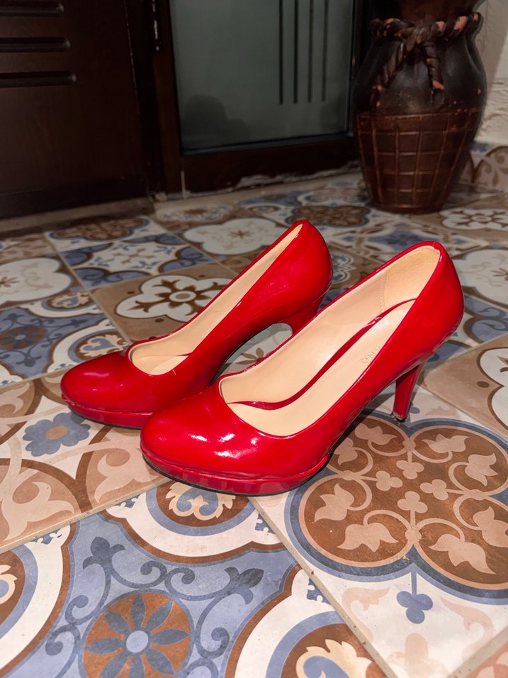Klasik Kırmızı Rugan Topuklu