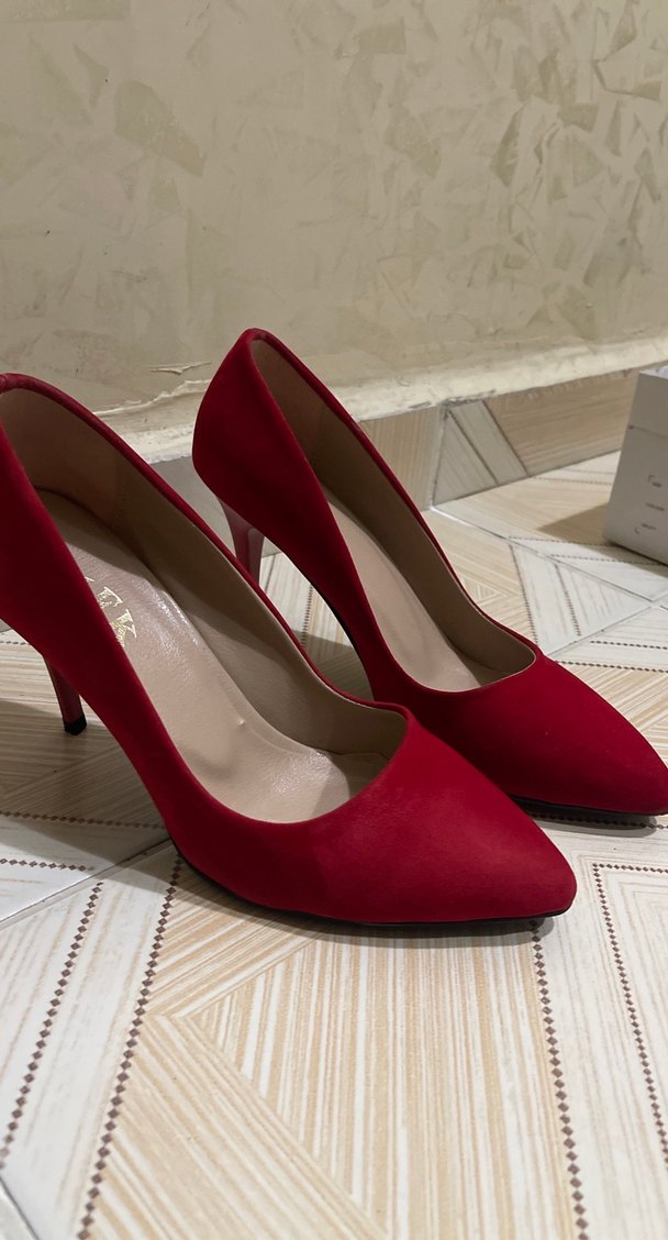 Klasik Kırmızı Süet Stiletto Topuklu Ayakkabı