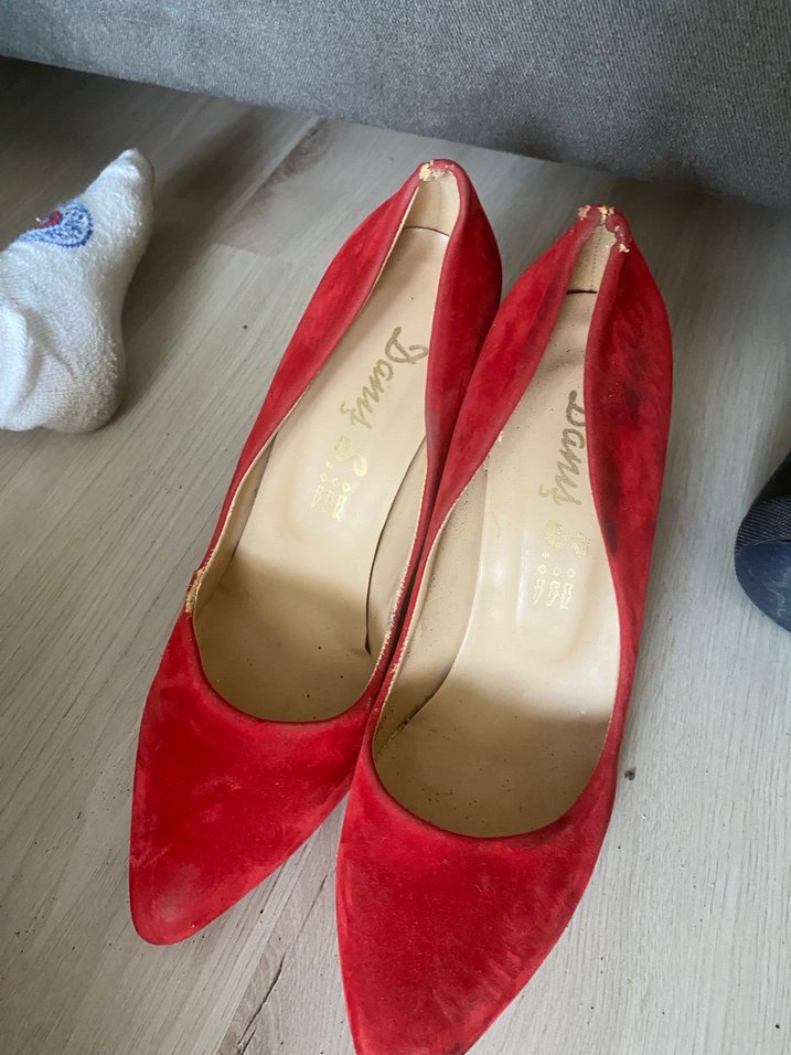 Kırmızı süet stiletto topuklu, parlak ve desensiz tasarıma sahip. Romantik akşamlar için zahmetsiz şıklık sunar. 38 yazıyor ama benı sıkıyor 38 giydiğim halde 37 şer daha rahat giyer düğün ayakkabım sadece küçük bir soyulma var