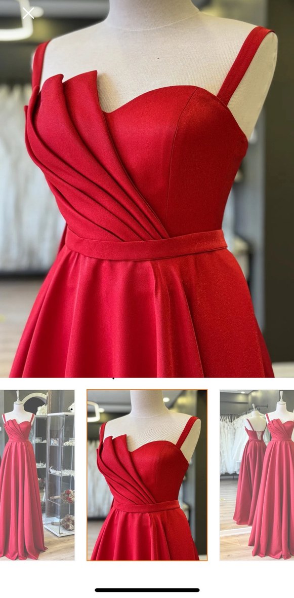 Klasik Kırmızı Uzun Drapeli Straplez Abiye