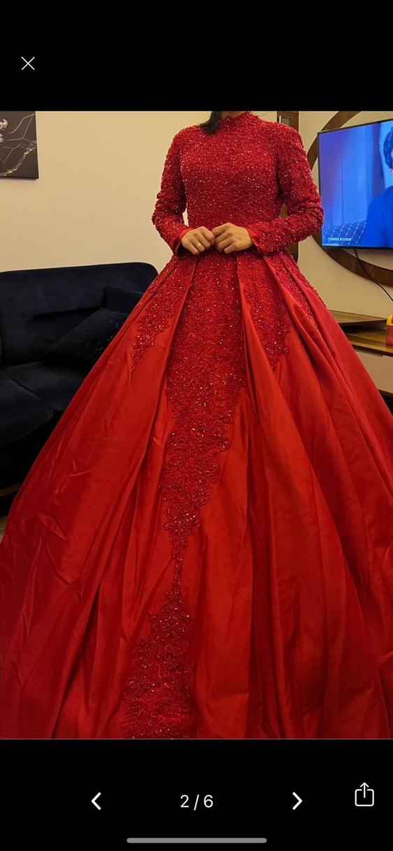 Klasik Kırmızı Uzun Kollu Sade Nişan Elbisesi