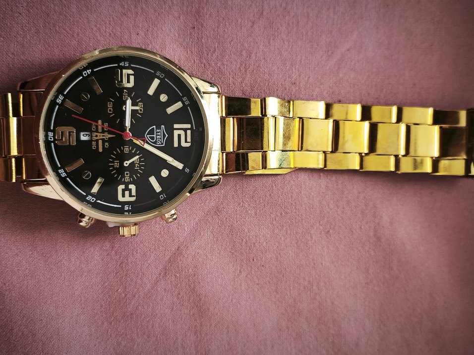 Koyu kadran ve altın renkli metal kayışa sahip, tokalı, klasik ve çağdaş tarzı birleştiren erkek kol saati. ⌚ Ürünlerimiz %100 yerli üretimdir ve kelepçelidir. ✅ Hiçbir yerde bulunmayan saatler ile tarzınızı ortaya koyun.