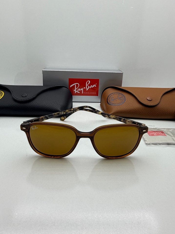 Klasik koyu kahverengi çerçeveli, tokalı detaylı Ray-Ban güneş gözlüğü, trend ve rahat bir stil sunar. ️