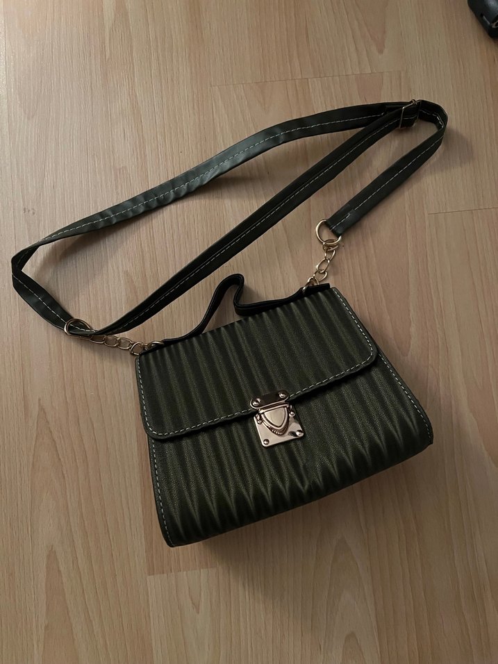 Klasik koyu yesil Siyah Yılan Desenli Deri Çanta