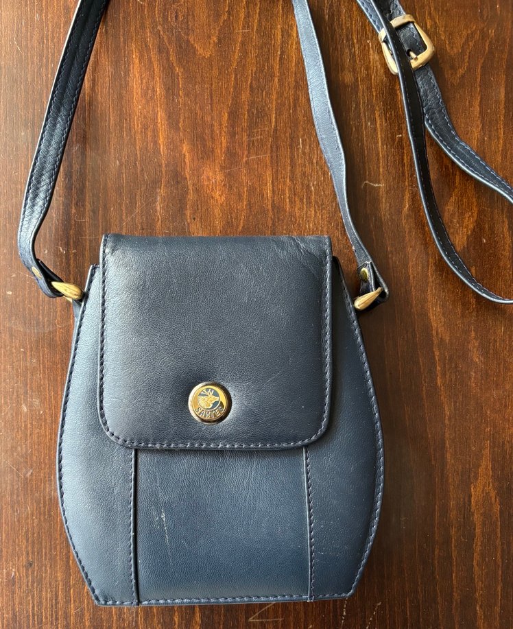 Klasik bohem tarzda, tokalı kapaklı ve ayarlanabilir askılı koyu mavi deri kadın çanta. Günlük kullanıma uygundur. Gerçek deri ve hafif deri üzerinde çizilmeler mevcut.