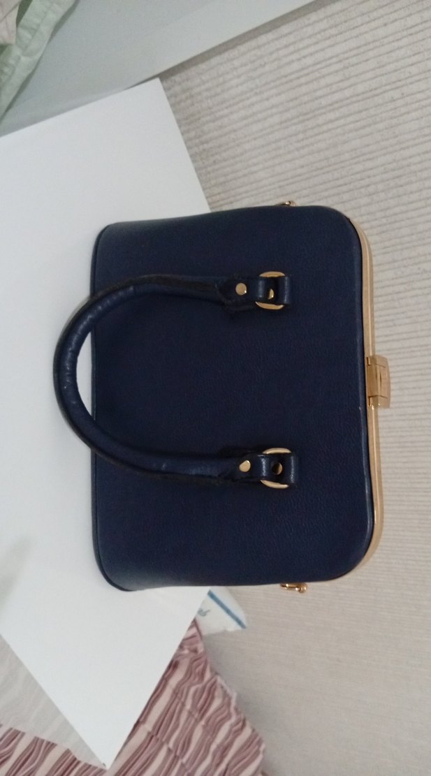 Koyu lacivert deri çanta, tokalı kulpları ve modern klasik tasarımıyla günlük kullanıma uygun, Paris tarzı zarafet sunar.