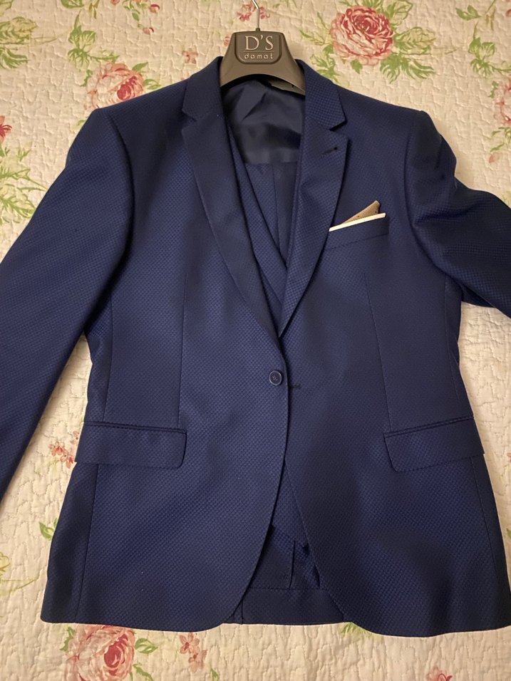 Lacivert erkek takım elbise, klasik kesim ve düğmeli tasarıma sahiptir. Uzun kollu, normal boy ve modern klasik stil sunar. İş ortamları için uygundur. ️