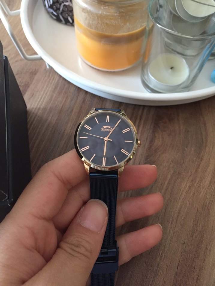 Parlak lacivert, altın detaylı ve tokalı kayışa sahip klasik kadın kol saati, bohem tarzıyla zarafeti birleştirir.