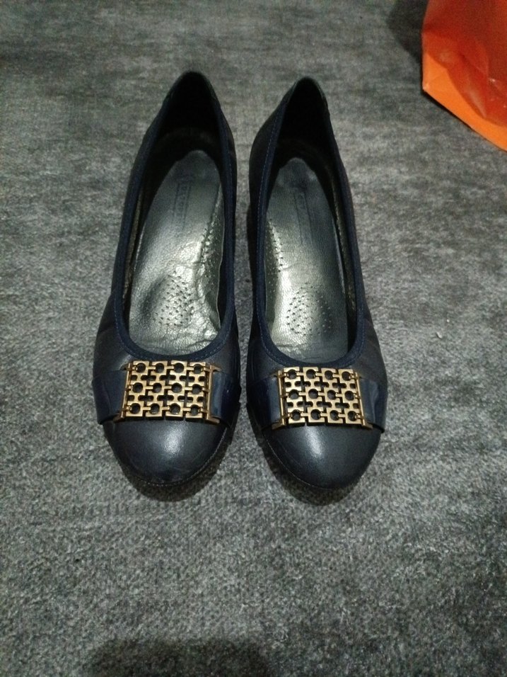 Klasik mavi renkte, blok topuklu kadın babetleri, tokalı detayları ve yılan derisi desenli kauçuk malzemesi ile ofis kullanımına uygundur.