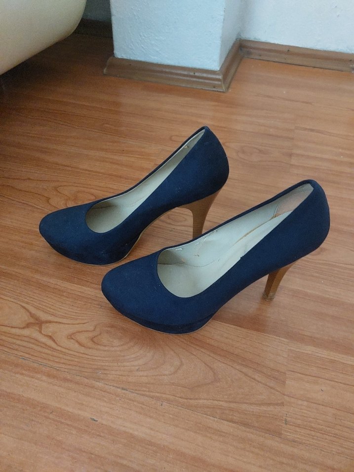 Koyu lacivert renkte, klasik ve konvansiyonel tasarıma sahip stiletto topuklu kadın ayakkabısı. Ofis kullanımı için uygun, zahmetsiz şıklık sunar.